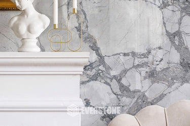 Crafted in Italy, this high-quality porcelain tile offers a sophisticated marble look, ideal for bathrooms and living areas. Combining timeless elegance with modern performance, it delivers the luxurious appearance of natural splashes of natural grey stone with the durability, ease of maintenance, and affordability of porcelain. A versatile choice for both walls and floors, available in 3 sizes.