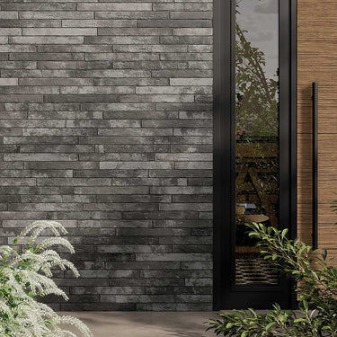 Deep grey tones with a weathered surface create a bold, dramatic effect. The distressed finish adds raw urban character, ideal for modern industrial interiors or statement walls.