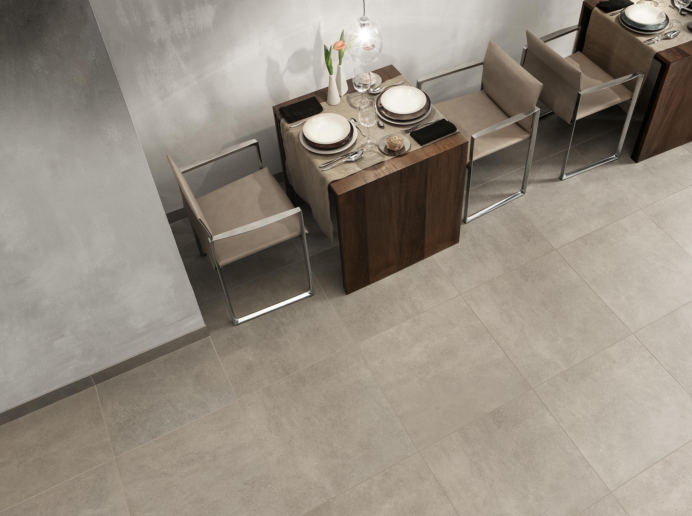 Stone Focus Tortora is a stone-look porcelain tile featuring warm tortora taupe and natural stone tones with subtle surface variation and a refined matt finish.