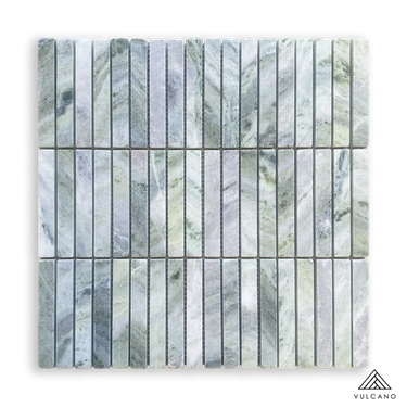 Stone Stax Amazonia is a stacked stone-look mosaic tile featuring warm earthy beige and natural stone tones in a layered linear format designed to create depth, texture, and dimensional surface detail.
