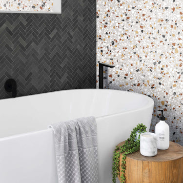 Its surface reinterprets classic Murano-inspired terrazzo with a soft, contemporary sensibility, combining subtle speckling and tonal variation that adds depth while maintaining a clean and sophisticated finish. The balanced neutral palette ensures strong versatility, making it well suited to both floor and wall applications across bathrooms, kitchens, living areas, and commercial interiors where a refined yet design-led surface is desired.
