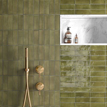 Its surface presents a gentle interplay of tonal movement, adding depth while maintaining a calm and cohesive aesthetic. The muted green palette introduces an organic, nature-inspired quality that works seamlessly across a wide range of interiors. It is well suited to both floor and wall applications in bathrooms, kitchens, living areas, and open-plan environments where a subtle connection to natural tones is desired.