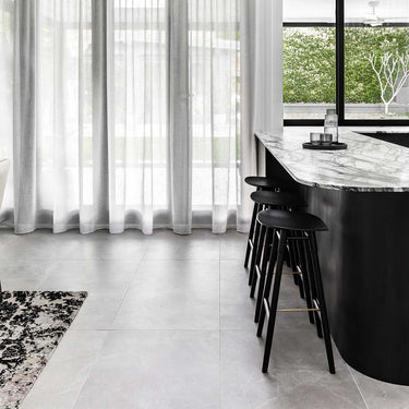 Eureka Grigio is a stone-look porcelain tile featuring soft to mid-grey natural stone tones with subtle surface variation and a refined matt finish.