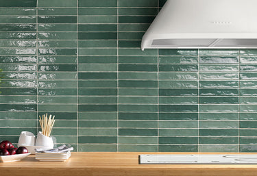 Fino Mix Gloss Olive is a decorative wall tile featuring rich olive-green tones with tonal variation and a high-gloss finish designed to introduce colour, reflection, and artisanal character to interior spaces.
