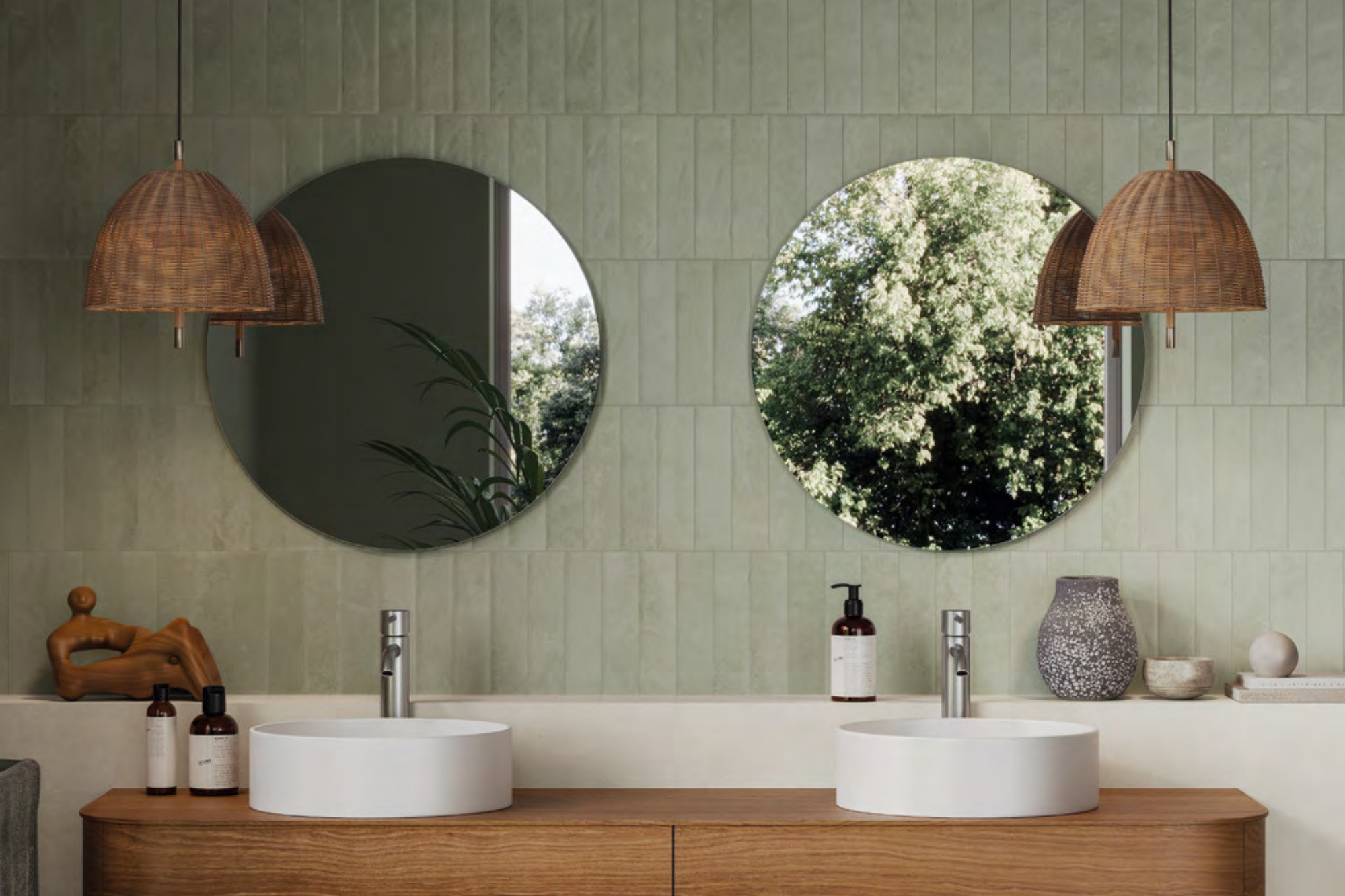 Its surface presents a gentle interplay of tonal movement, adding depth while maintaining a calm and cohesive aesthetic. The muted green palette introduces an organic, contemporary feel that sits comfortably within a wide range of interiors. It is well suited to both floor and wall applications across bathrooms, kitchens, living areas, and open-plan environments where a subtle yet distinctive material base is desired.