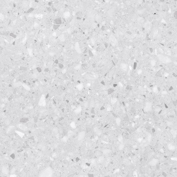 Its surface includes delicate shimmering particles that create a gentle sense of movement and light play while maintaining a clean and balanced aesthetic. The cool silver palette enhances openness and versatility, making it well suited to both floor and wall applications across bathrooms, kitchens, living areas, and commercial interiors where a modern, light-enhancing surface with subtle texture is desired.