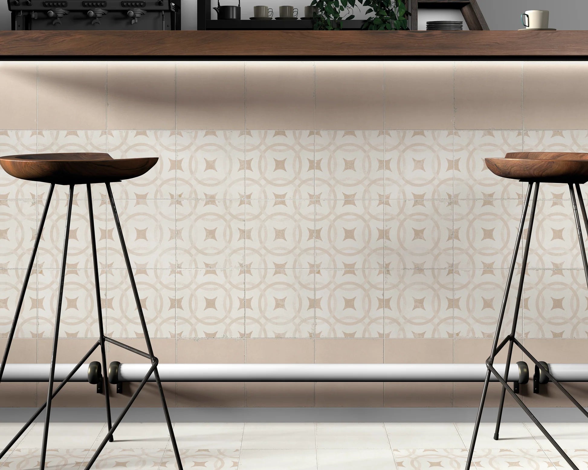Valencia Jordana is a decorative porcelain tile featuring a patterned design with soft, balanced tones, created to introduce rhythm, detail, and a refined sense of movement to interior spaces.